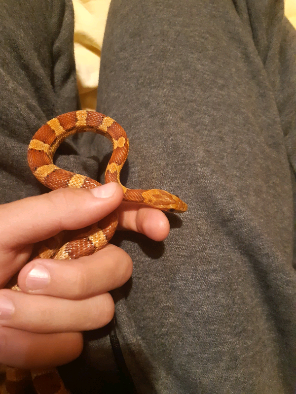 - 1Yr Old Female Motley Gold Dust Corn Snake | Andover ... - Hi,Not Sure If My Corn Snake Is Too Small For Its Age,Its 1 Year Old And Is 19 Inches Long She Eats Well Once A Week One Small Mouse (Fluff) I Think You Call It.